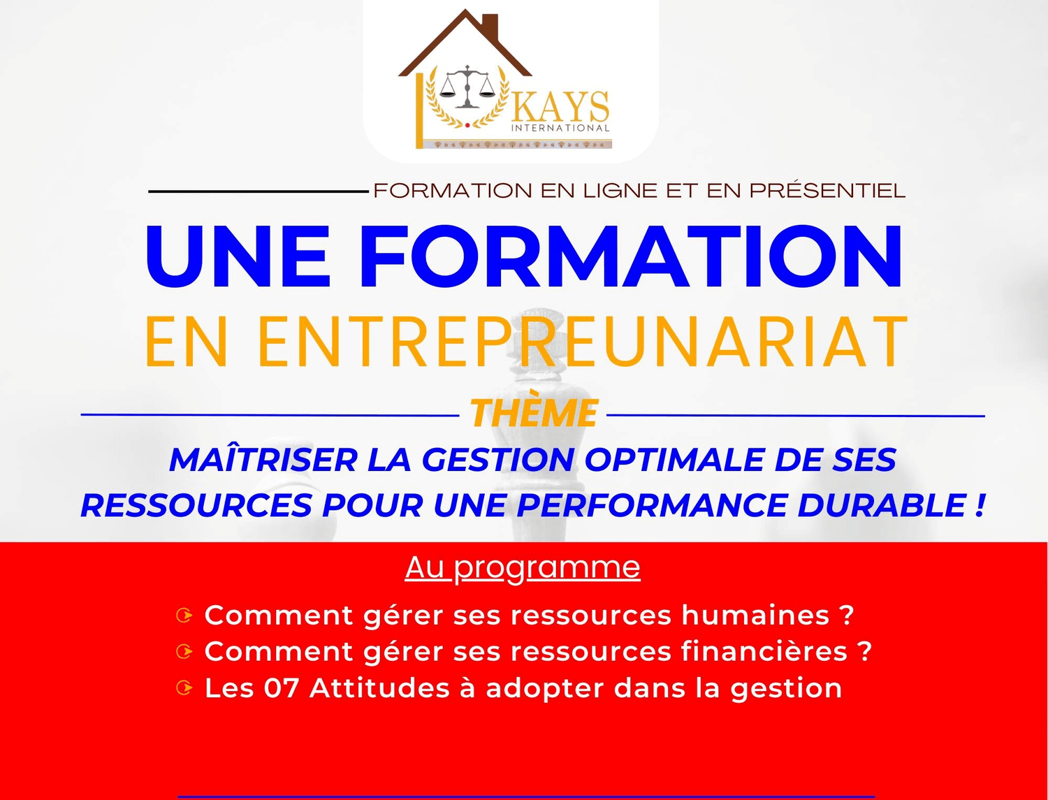 Notre Cabinet offre une série de cours conçus pour renforcer vos compétences en leadership, affiner votre expertise en gestion d'entreprise et vous aidez à atteindre vos objectifs entrepreneurs avec succès.